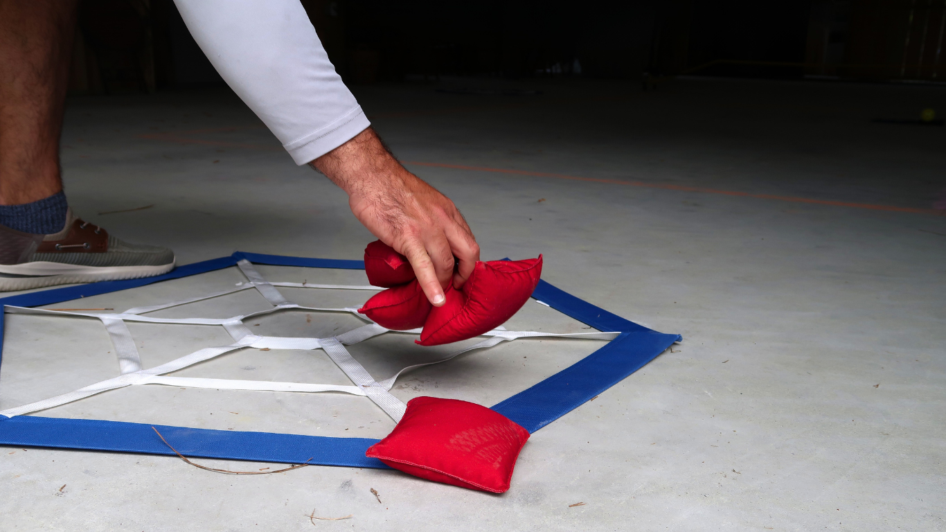 - Toss the weighted bags - alternating between teams until all bags are thrown.