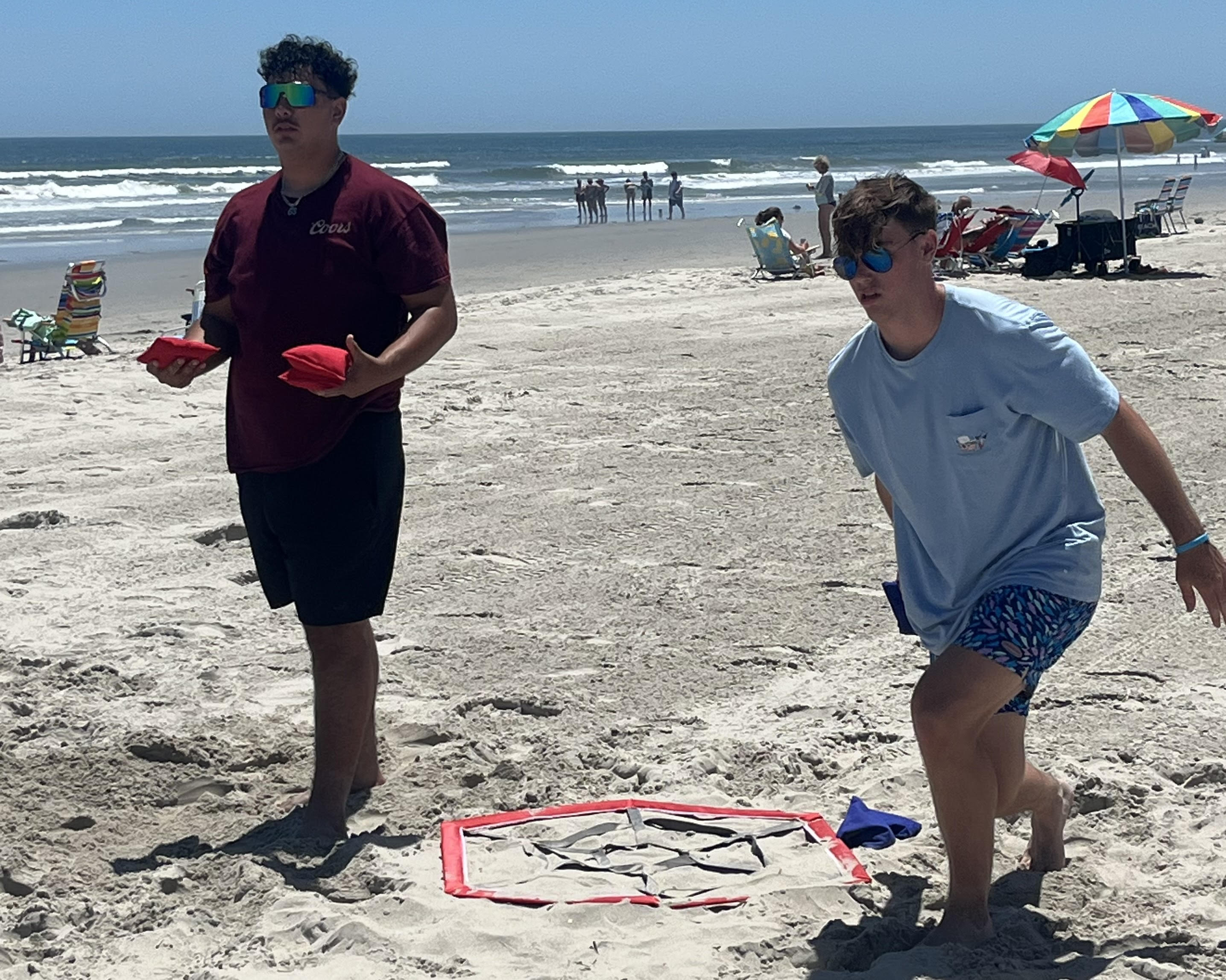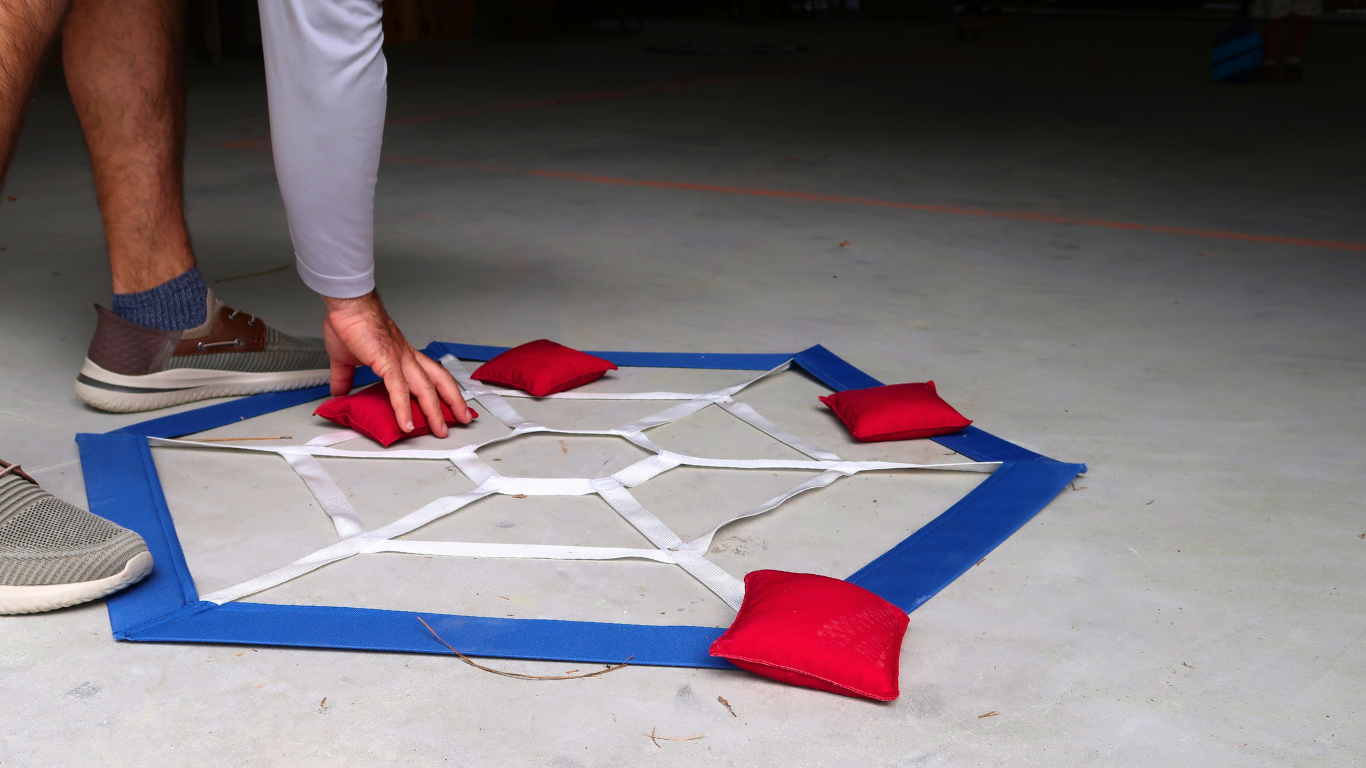 - Toss the weighted bags - alternating between teams until all bags are thrown.